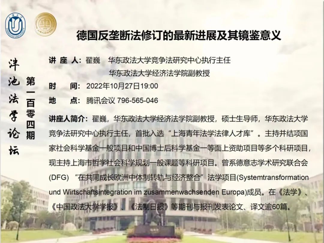 泮池法学论坛第104期:德国反垄断法修订的最新进展及其镜鉴意义