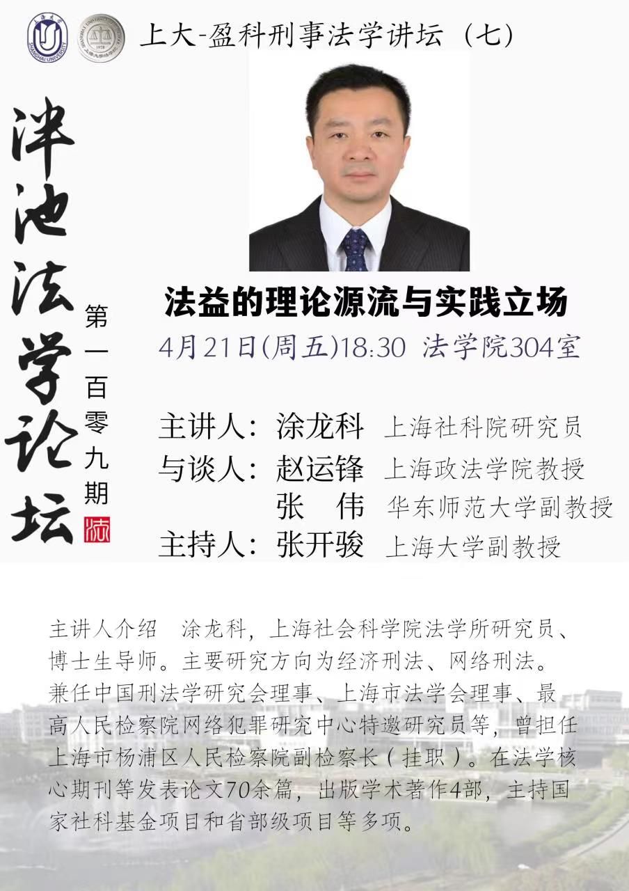 泮池法学论坛第109期:法益的理论源流与实践立场