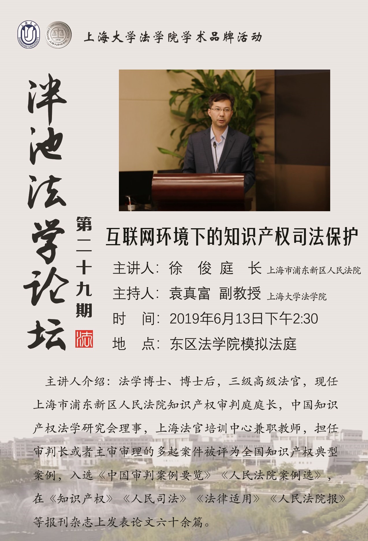 泮池法学论坛第29期预告:互联网环境下的知识产权司法保护