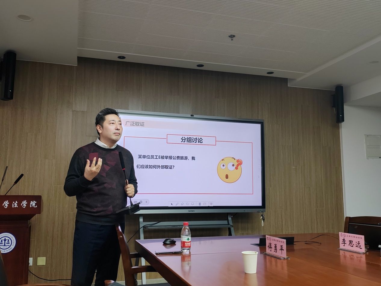 傅勇平组长作为资深法律人、检察官与企业纪检专家,凭借多年实战经验,从取证、场域、心理战术等多个维度,深入剖析了谈话中的“破局之道”,为师生们带来了一场理论与实务深度融合的精彩讲座。