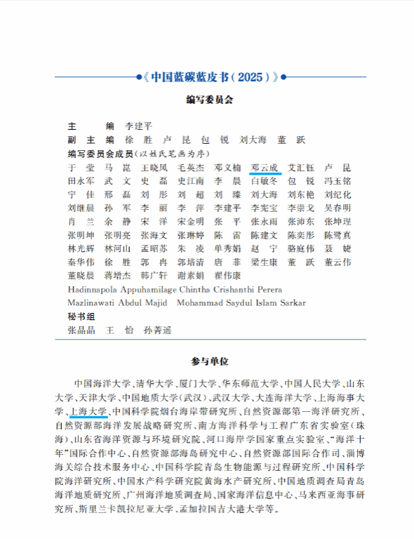 近日,《中国蓝碳蓝皮书2025》正式刊印,beat365唯一官方网站邓云成副研究员参与相关章节编写,也是beat365官网专家首次受邀编写蓝碳蓝皮书。