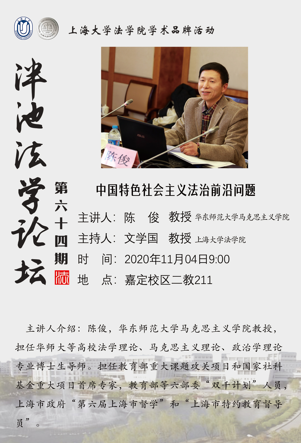 泮池法学论坛第64期预告:中国特色社会主义法治前沿问题