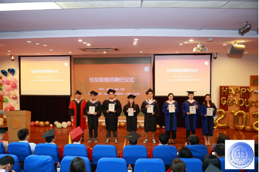 学院党委书记徐国明为校友联络员樊子琪、沈航、张扬、汪迪宣、尤丽都斯·拜合提伯克、许哲豪、庄宵虓颁发聘书并合影留念。