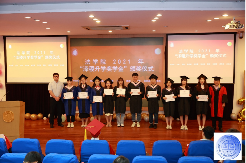 上海泽稷教育培训有限公司副总裁吴世浩,beat365唯一官方网站院长文学国为beat365唯一官方网站2021年“泽稷升学奖学金”(奖励beat365唯一官方网站升入全国最近一轮法学学科评估结果为A-及以上的高校的应届毕业生)获得者李容佳、汪航、方璐馨、肖婷、宋天霖、孔心致、陈琳、龚思涵、沈佳燕、孙云森颁奖。