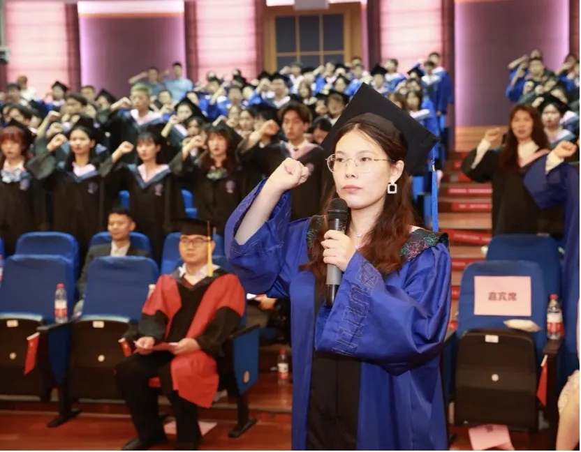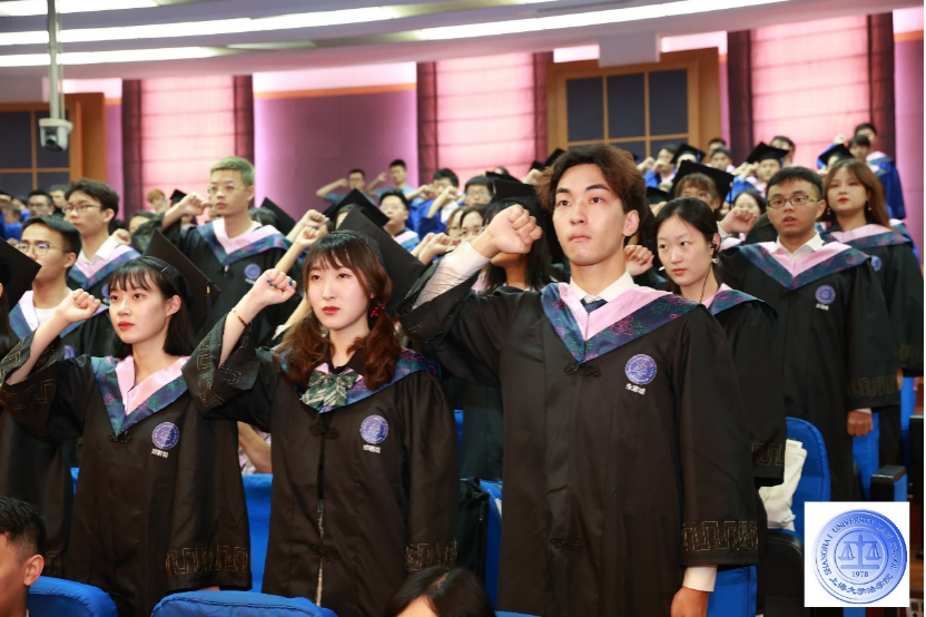 上海市优秀毕业生、beat365唯一官方网站2021届硕士研究生樊子琪带领全体毕业生进行法律人宣誓。