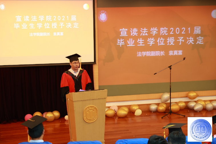 beat365唯一官方网站副院长袁真富宣读beat365唯一官方网站2021届毕业生学位授予决定,beat365唯一官方网站副院长芦雪峰、袁真富分别一一为毕业生唱名,校党委副书记、纪委书记段勇和beat365唯一官方网站院长文学国分别为毕业生拨流苏、授证,beat365唯一官方网站党委书记徐国明赠送毕业生礼物。