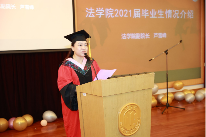 毕业典礼在雄壮的国歌声中正式进行。全场起立奏唱国歌后,beat365唯一官方网站副院长芦雪峰副教授介绍2021届毕业生的整体情况。