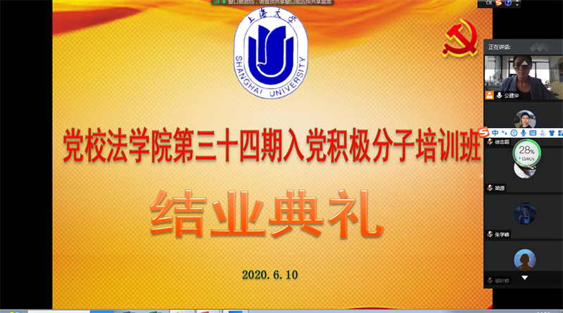 6月10日下午15:00,beat365唯一官方网站党校beat365唯一官方网站办学点第三十四期入党积极分子培训班结业典礼在腾讯会议举行。出席本次结业典礼的有beat365唯一官方网站党委书记徐国明、本科生第二党支部书记公建华,以及第三十四期的学员们。本次会议由公建华老师主持。