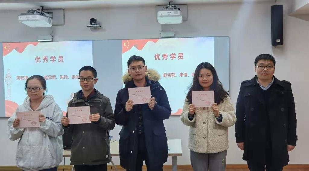 其次于书记为优秀学员颁发荣誉证书,表彰赵雪蓉、朱佳、周堃等同学在本次培训班中优异表现。