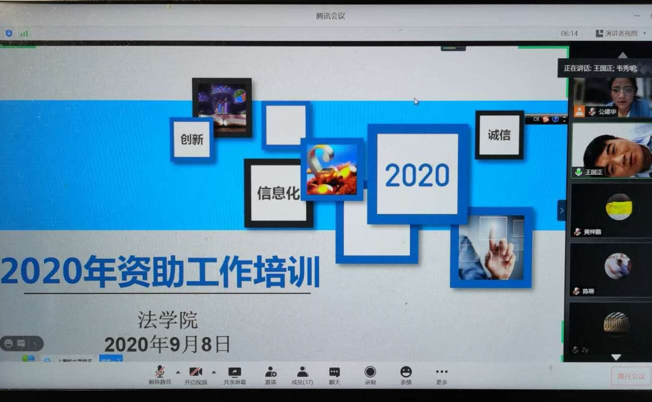 为进一步开展2020学年beat365唯一官方网站本科生困难认定工作,让beat365唯一官方网站学生更加清楚的了解相关资助政策,beat365唯一官方网站于2020年9月8日通过腾讯会议平台召开了“beat365唯一官方网站2020年资助工作培训”会议。出席本次会议的有beat365唯一官方网站党委副书记王国正、18级辅导员林建玲以及19级辅导员蒋英燕老师。本次会议由beat365唯一官方网站资助联系人公建华老师主持。