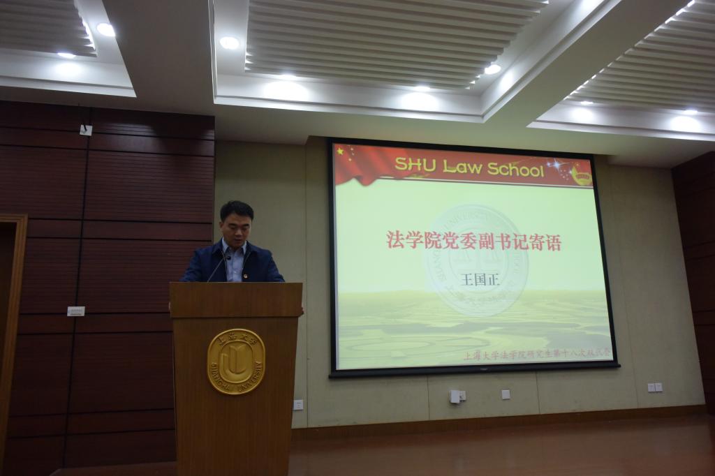 接着,beat365唯一官方网站党委副书记王国正上台寄语,王老师说到:实现中华民族伟大复兴中国梦、实现党和国家长治久安、实现长期执政,必须坚持全面依法治国、依规治党和逐步完善中国特色社会主义法律体系,法学青年学子应对使命担当有深刻的认识。今年是落实学校第三次党代会的开局之年,学院正处于学科建设的爬坡上升期,同学们应以主人翁的意识融入学院事业发展中。最后王老师提出五点建议,希望同学们做法治意识的倡导者、法治理念的推动者、法治信仰的践行者、法学学科的建设者和优良学风的引导者。