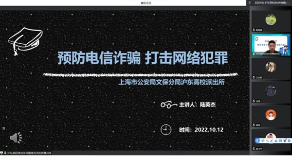 10月12日,beat365唯一官方网站研究生新生安全主题教育之“预防电信诈骗,打击网络犯罪”防诈骗讲座顺利举行。本次活动邀请上海市公安局文保分局沪东高校派出所陆英杰警官担任主讲嘉宾。陆警官从校园电信网络诈骗受害人群的主要特点切入,重点围绕冒充公检法、熟人、客服、购物抽奖、杀猪盘、刷单网络投资等诈骗手段,通过具体案例和互动视频,为在场同学提供一系列预防网络诈骗的安全贴士。讲座最后,陆警官提醒大家要牢记96110的反诈劝阻专线,保护好个人信息和财产安全,时刻绷紧防诈骗的安全弦。本次新生安全讲座不仅提高了同学们的反诈本领和防骗意识,更进一步促进了安全文明校园建设,有助于新生更加健康安全地开启未来学习生活。