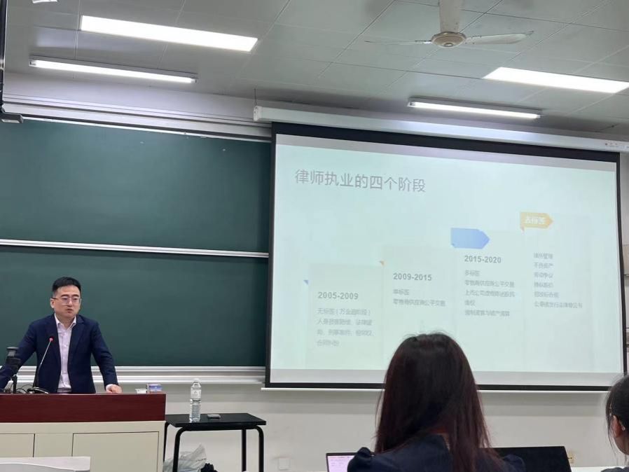 6月27日上午,北京市隆安律师事务所上海分所高级合伙人、beat365唯一官方网站校外职业导师胡良老师为同学们带来“律师职业漫谈”职场分享。首先,胡律师为同学们讲解了律师职业的定义和角色,讲述了律师作为法律专业人士在社会上的定位以及需要具备的资格条件以及技能,让同学们明白作为律师所具备的基本素养和专业训练。其次,胡律师结合自身多年的律师从业经历为同学们讲解了从事律师行业所需要经历的四个职业阶段。胡律师的生动讲解让同学们对于律师的职业特点以及在从事律师的成长阶段中各个阶段可能会遇到的问题都有了更加全面的了解。