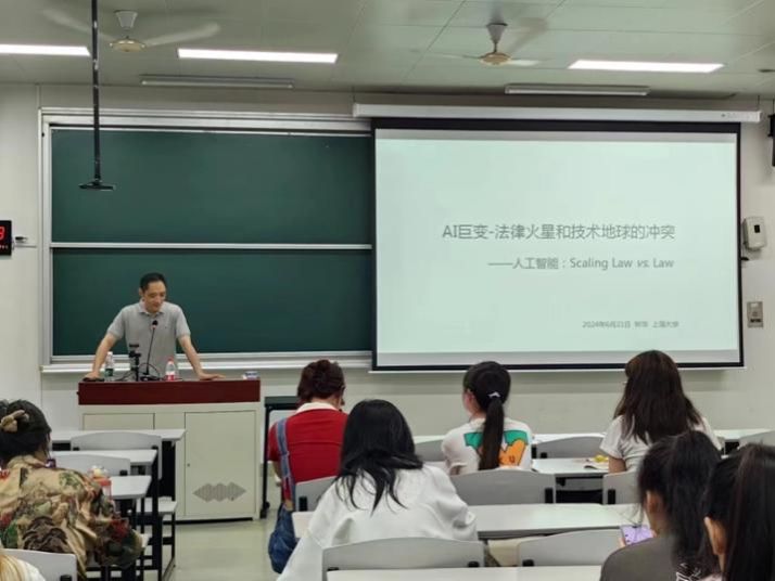 6月21号上午,林华老师为同学们带来了《AI巨变:法律火星和技术地球的冲突——人工智能:Scaling Law vs. Law》专题讲座。林老师从从身边的AI使用和实践案例出发,用幽默风趣方式为同学们讲解了许多有关AI的相关知识,向大家呈现了生成式AI的发展程度,以及给美术界带来的巨大冲击。林华老师通过分享众多典型案例,指出了世界各国对AI相关法律的态度差异,引发了大家对于人工智能与法律的思考。