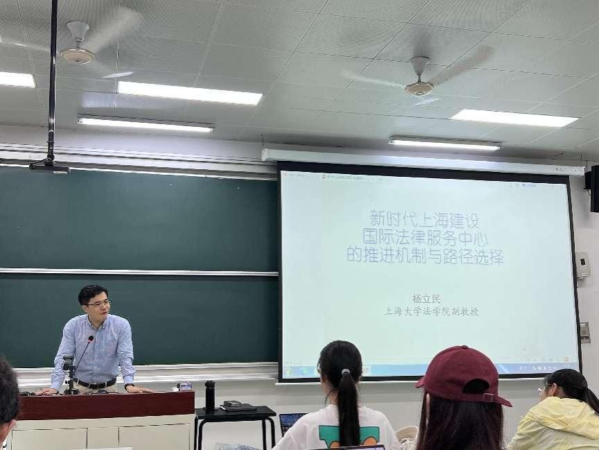 6月19日下午,法理法史教研室的杨立民老师为同学们带来了关于《新时代上海建设国际法律服务中心的推进机制与路径选择》的专题讲座。杨老师从上海建设国际法律服务中心背后的依法治国政策支持,上海法律服务产业结构提供的现实条件的支撑以及上海建设国际法律服务中心可能遇到的难题等多个方面进行了讲解。让同学们对依法治国实践的创新举措、推动城市高质量发展的决定有了更加深入的了解,也增加了同学们投身于法治建设的信心。