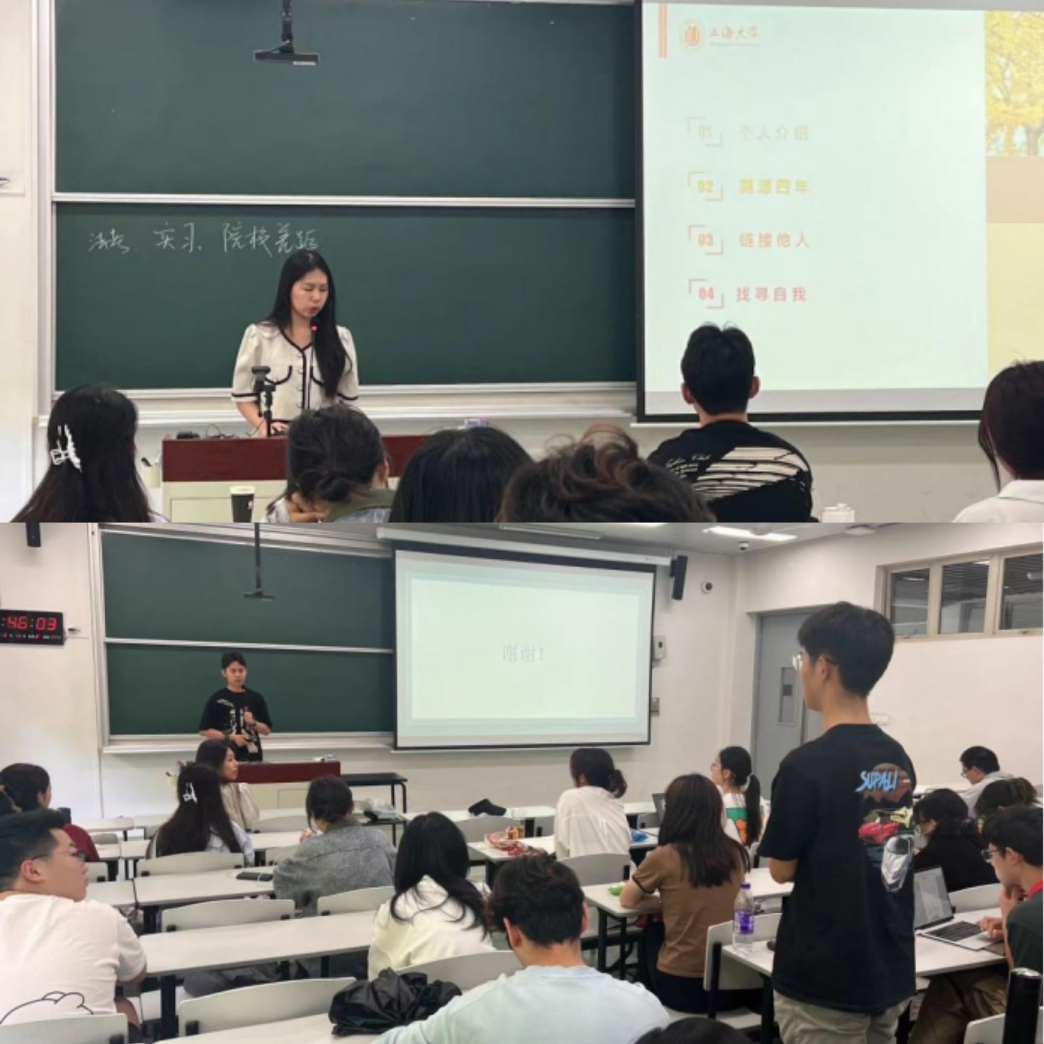 6月18日上午,beat365唯一官方网站优秀毕业生代表王天阳和王舒骧同学给23级新生们带了朋辈交流分享。两位同学分别从分别从专业学习、专业竞赛、学术成果、学术工作、社会学生工作等多个方面与现场的同学进行了交流分享。