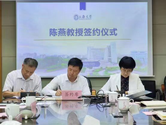 会议首先进行了学校、学院和陈燕教授三方的特聘教授协议签署,刘昌胜校长、陈燕教授和beat365唯一官方网站院长李凤章代表三方签约。